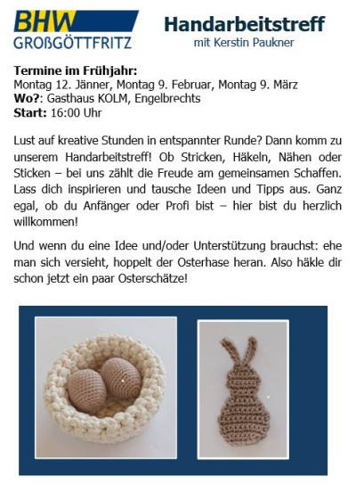 | 13. | Handarbeitstreff im Gasthaus Kolm |